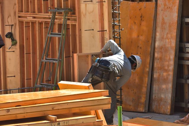 型枠大工の仕事は、組み上がった鉄筋に合せて木板やベニヤ板などを加工し、コンクリートを流し込んで成形する為の型を作り、組み立てる作業を行う事です。